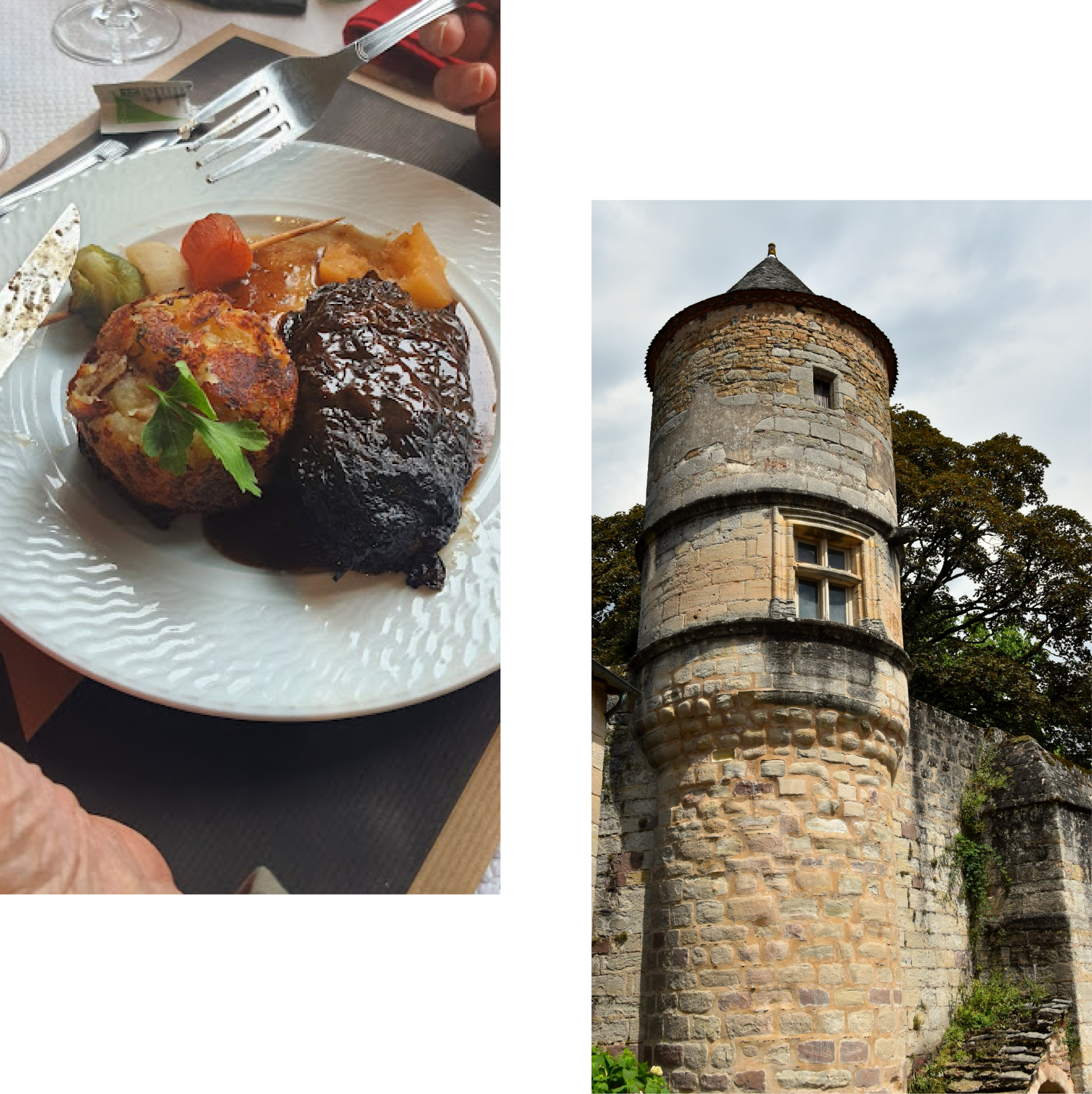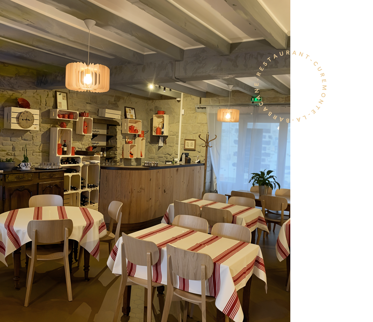 La salle climatisée, au décor rustique revisité, offre une vue dégagée sur la vallée et les paysages vallonnés qui entourent Curemonte. Ce panorama exceptionnel, rare dans la région, accompagne le repas et participe au charme de l’expérience. Les visiteurs apprécient particulièrement la quiétude des lieux, située à quelques minutes seulement de sites touristiques majeurs comme Collonges-la-Rouge, Turenne ou Beaulieu-sur-Dordogne.